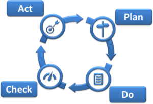 Mit unseren Schulungsunterlagen zum PDCA-Zyklus erhalten Sie somit einen detaillierten Einblick in den Ablauf in diesen so wichtigen vierphasigen Problemlösungsprozess. Dieser stammt ursprünglich aus der Qualitätssicherung und kommt heutzutage auch beim sogenannten kontinuierlichen Verbesserungsprozess zum Einsatz. Er wurde von dem US-amerikanischen Wissenschaftler Edwards Deming entwickelt. Zyklus und Kreis weisen darauf hin, dass es sich bei PDCA-Zyklus um einen fortlaufenden Prozess handelt, welcher die Bereiche Analyse, Verbesserung, Umsetzung, Standard integriert. Gerade im Qualitätsmanagement ist dies von besonderer Bedeutung. Mit anderen Worten, nur wer kontinuierlich überprüft, verbessert und neue Standards setzt, wird auch infolgedessen langfristig erfolgreich sein.